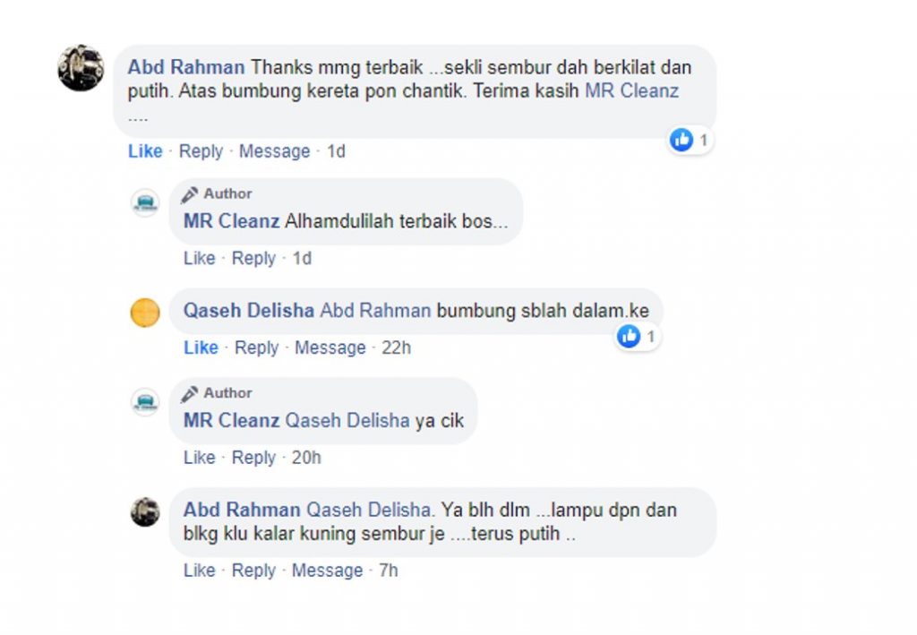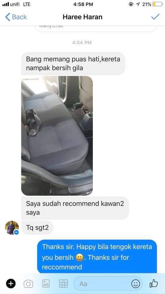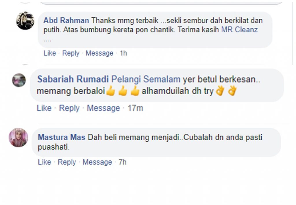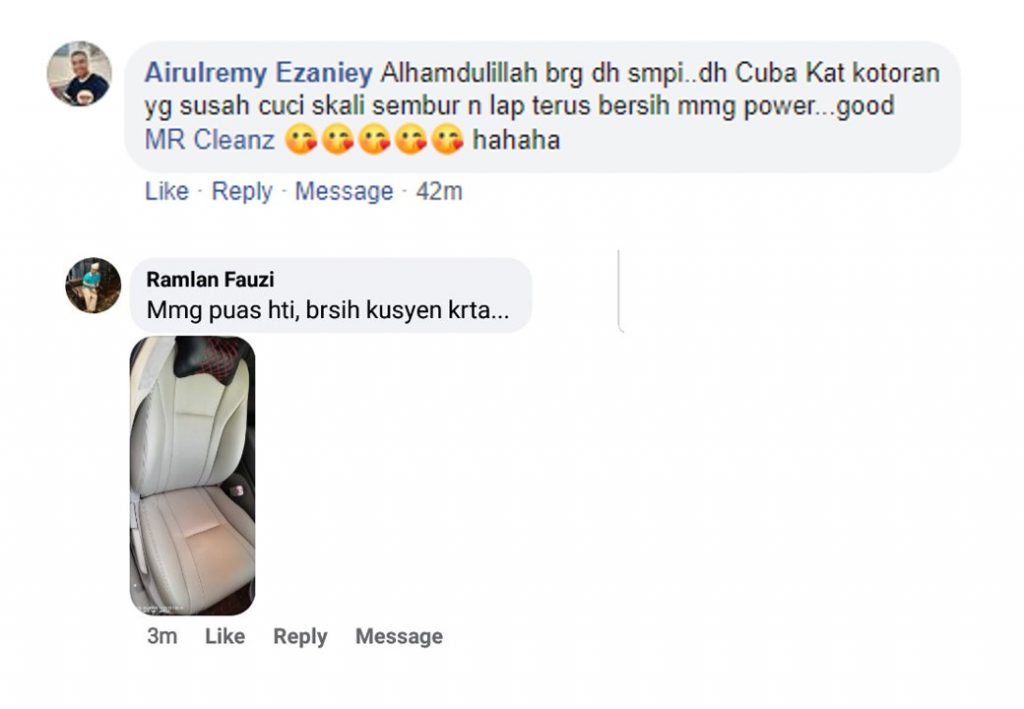 "Memang terbaik !!! kusyen kereta tahun tak pernah cuci bersih macam baru keluar showroom" - Tn Ramlan, Penang